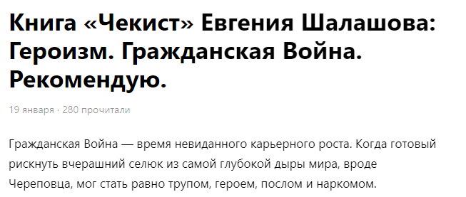 Автор: Евгений ШалашовНашел на просторах Интернета, в вернее, на дзене отзыв на свой цикл "Чекист".