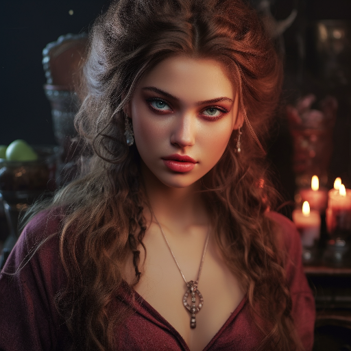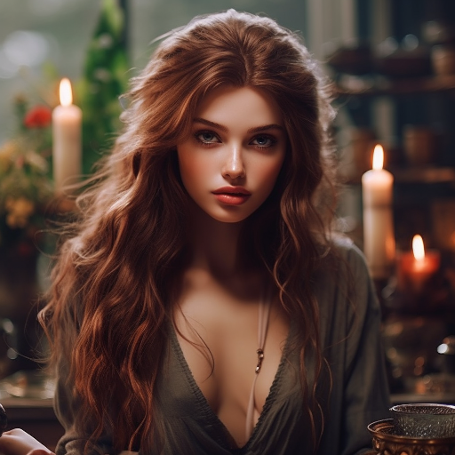 Получились они все какие-то однотипные, но довольно соблазнительные, хотя цели такой не преследовалось. Я хотела простую рыжеватую миловидную ведьмочку, деятельную и серьезную. А получилось что получилось ... Обнаженки тут нет! Люблю эту нейросеть, но правильно писать запросы до сих пор не научилась)))