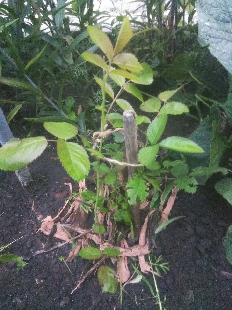 На место винограда посадила две розы-вьюшки, выращенные из веточек. Прикрыла почву виноградной корой, чтоб не так пересыхала, (так что от сухого винограда тоже куча пользы). Даже не знаю, каких они расцветок будут, эти розочки.