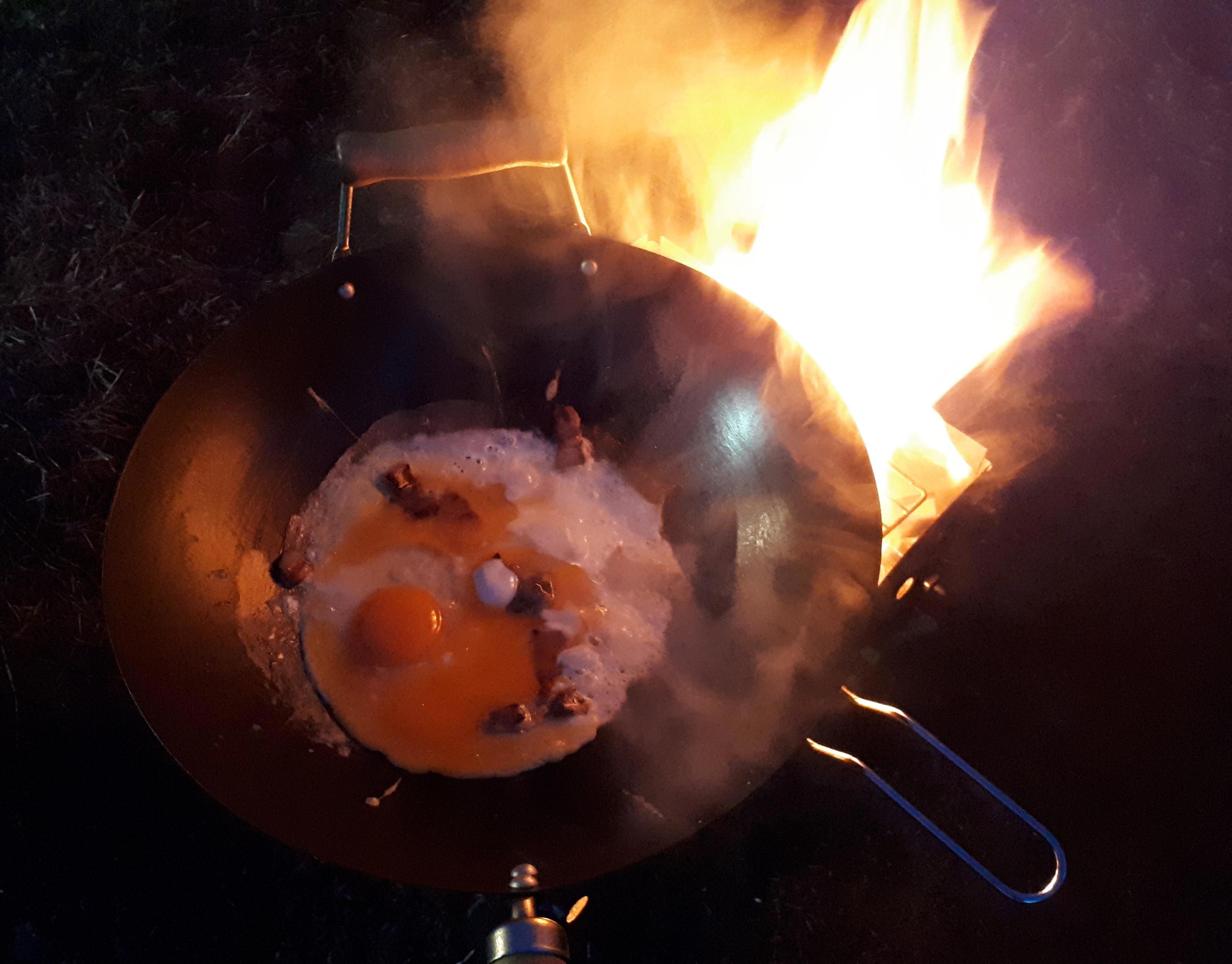 Доехала без приключений. Вот тока проблемка одна возникла по приезду. Газовая плита накрылась медным тазом, поэтому вечером поела то, что варить и жарить не треба. Но...на всё лето бабульку привезли, и я естественно переживала больше за неё, чем за себя. И решила я пожарить яички на костре на следующий день вечерком. Нам привезли из деревни два десятка яиц. (Тока, они так в контейнере и остались лежать сбоку, а старые на дверце забыли выкинуть. Я про это не знала и пожарила те, что на дверце.
