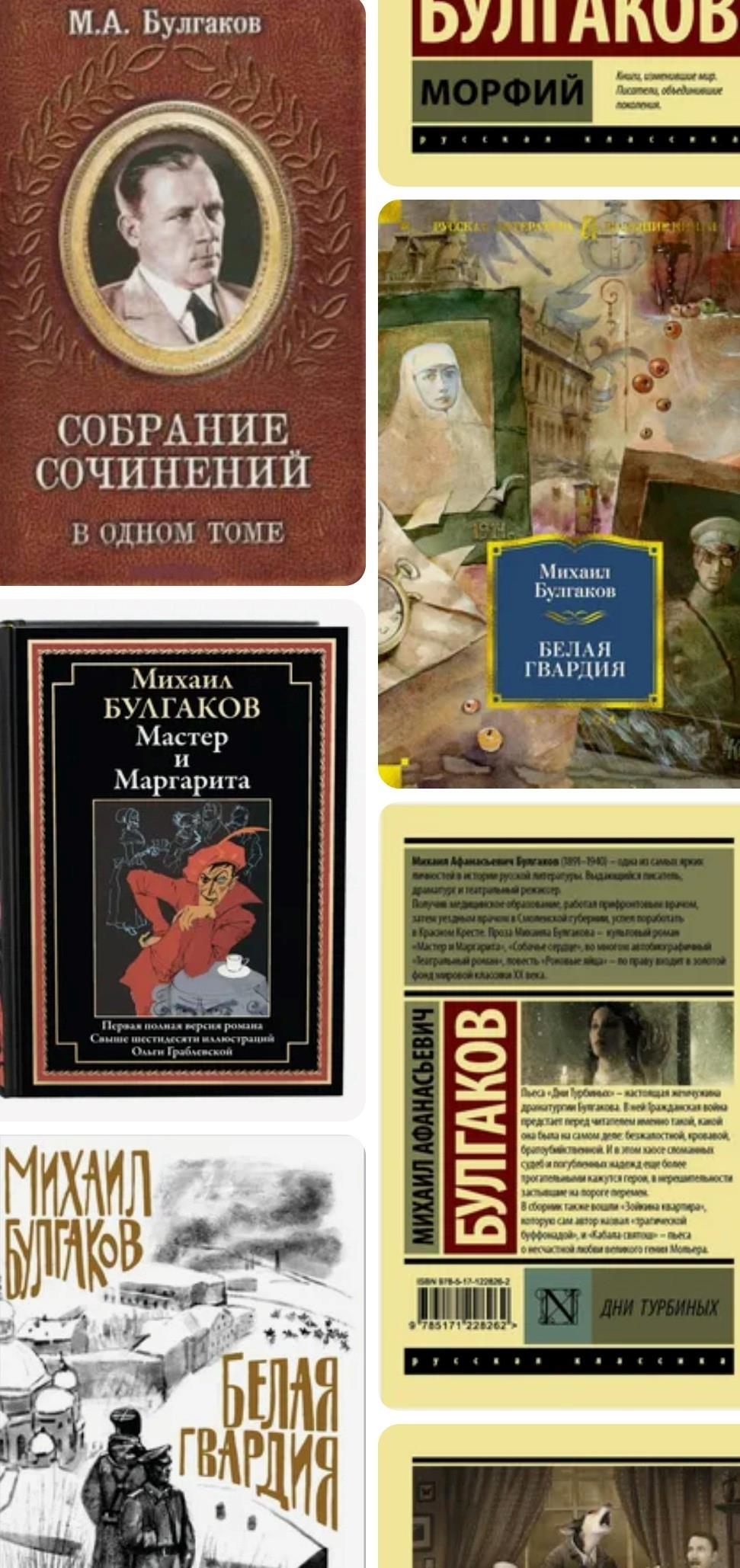 Известные произведения: «Собачье сердце», «Записки юного врача», «Театральный роман» («Записки покойника»), «Белая гвардия», «Роковые яйца», «Дьяволиада», «Иван Васильевич» и роман, принёсший писателю мировую известность, — «Мастер и Маргарита», экранизированный как в России, так и в других странах.