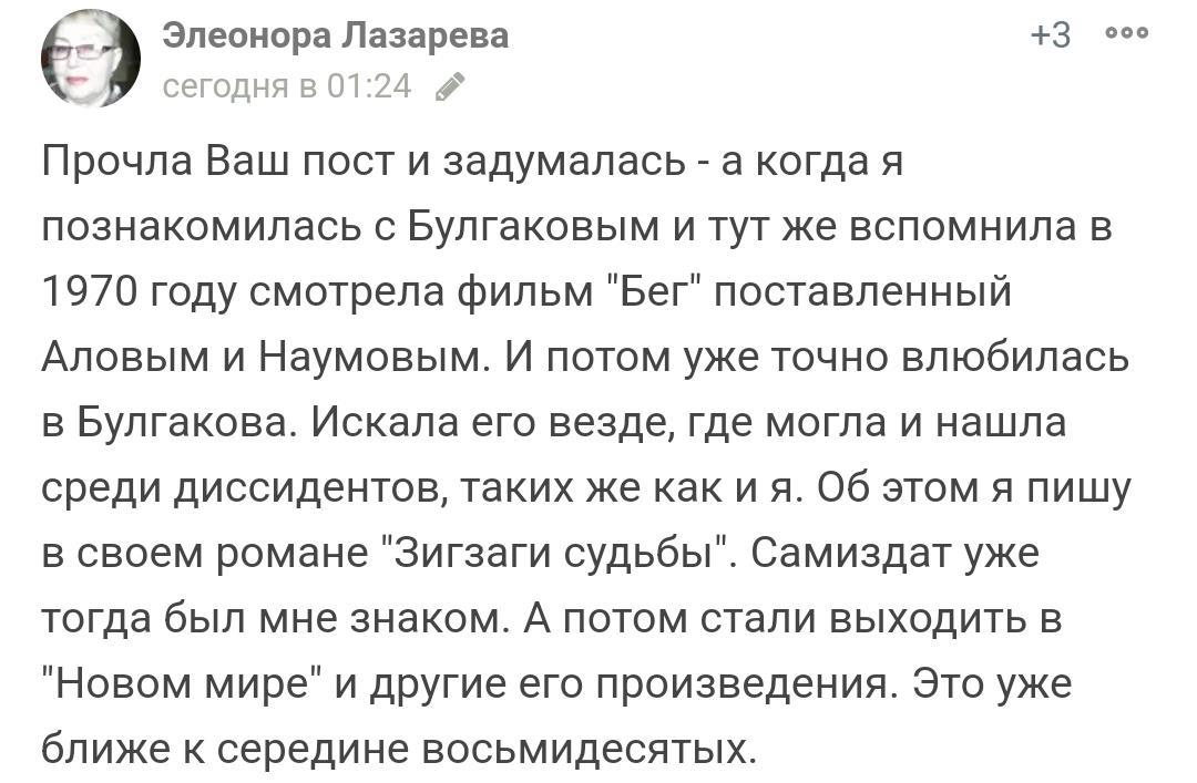 В этот же период писатель начал диктовать жене последний вариант романа «Мастер и Маргарита». Роман впервые был опубликован в журнале «Москва» в 1966 году, то есть спустя 26 лет после смерти писателя, и принёс Булгакову мировую известность.