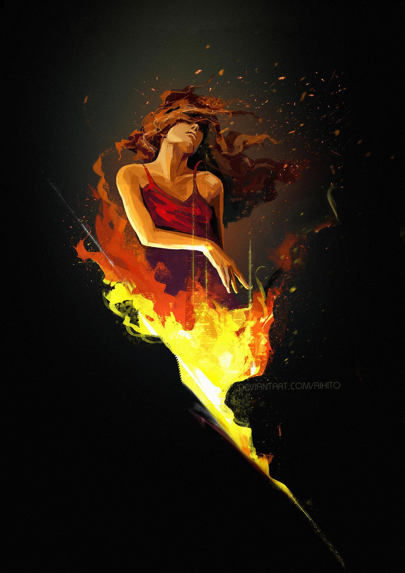 Девушка, рожденная из магического огня, темнота и свет - вот, что должно было быть на иллюстрации.