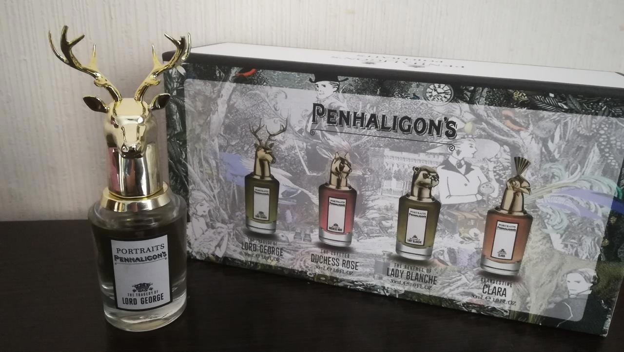 The Tragedy of Lord George Penhaligon's (лорд Георг, флакон-олень) мужской - ноты бренди и бобов тонка в древесно-амбровой дымке, создатель аромата видел молодого джентльмена с роскошным поместьем и многовековой историей, уверенного в себе, по мне так джентльмену тут сильно за 35, можно сказать в самом расцвете)) бренди и дымка как олицетворение простительных аристократу пороков, наш аристократ и пьет, и курит, и ловелавствует... у него много тайн, но все расскажет аромат)