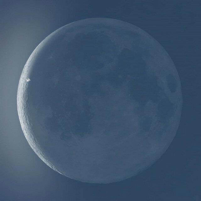 Из-за этого контрастность луны была намного ниже, и мне было трудно сфокусироваться на ней с помощью моего оборудования. К счастью, МКС все еще светит достаточно ярко, чтобы делать снимки в подобных условиях.