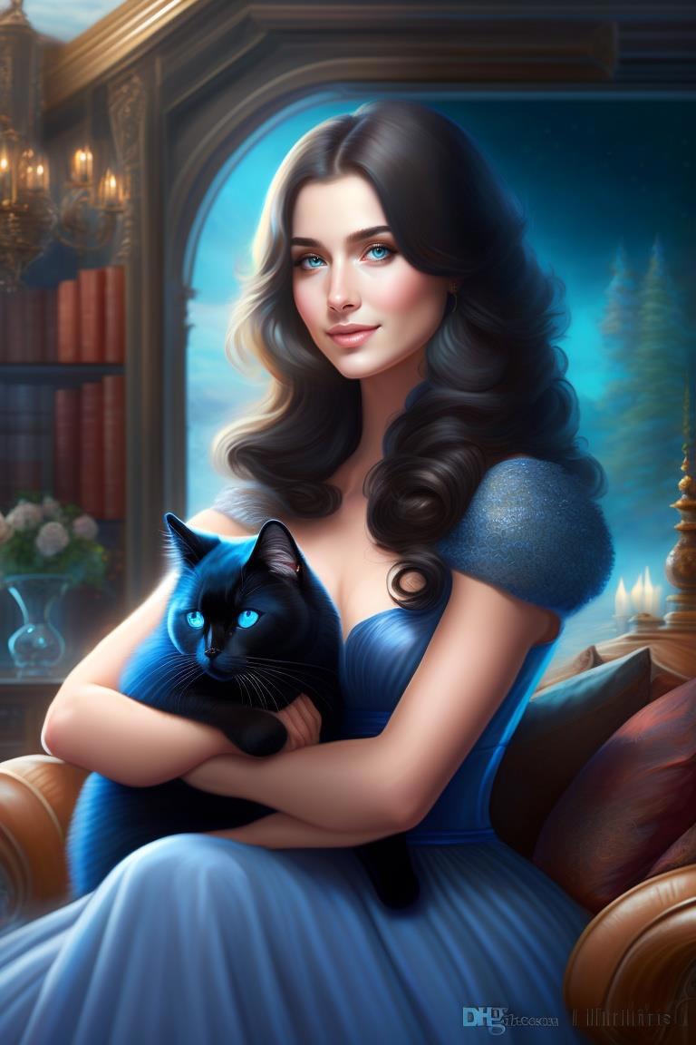 Ну вроде всех самых ярких персонажей перечислила... Эх, аж ужасно захотелось поскорее принести сюда свою Чарну! В общем, ждите! Ну а на этой картинке от нейросети, главная героиня "Рождение Чарны" - ледяная колдунья Минати со своим черным котом Себастьяном