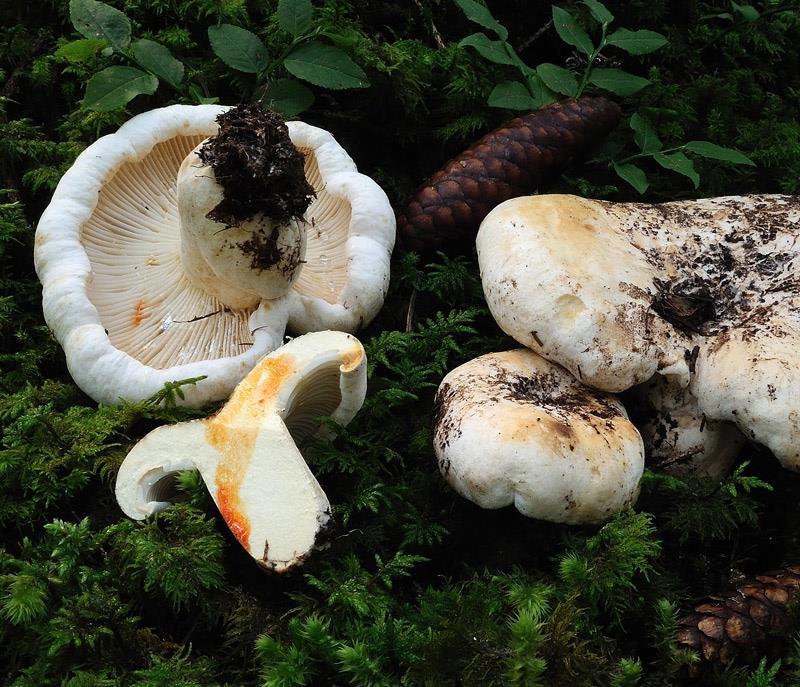 Цапнутый по пластинкам сизоватый груздь от огорчения сизеет. Не очень быстро, но вполне заметно.