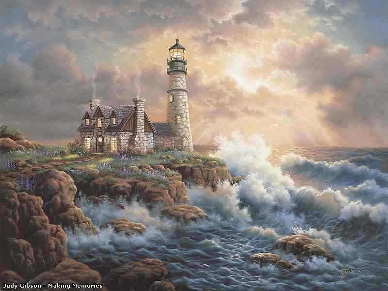 Мой "Перекрёсток Миров" (ещё не знаю, зачем это придумываю - может, однажды и пригодится?) это огромный морской залив. В океан из него выходит два или три пролива; снаружи залив очерчен мошной островной дугой, и главный, самый глубоководный и самый удобный из проливов как раз пролегает между мысом, ограничивающим залив, и крайним из островов. На мысу стоит большой маяк - и это ох, какой непростой маяк...