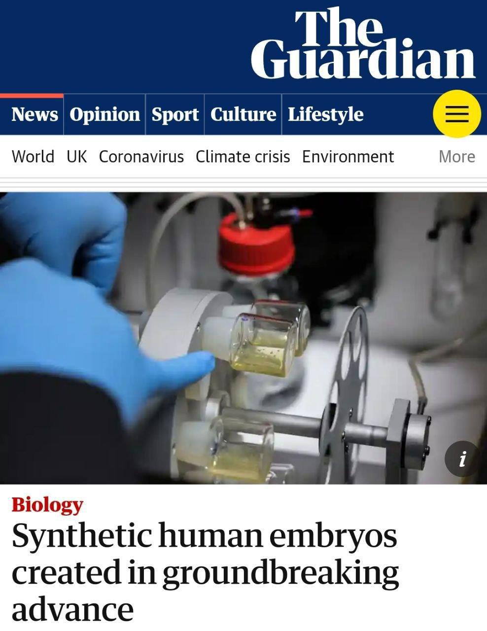 "Ученые создали синтетические человеческие эмбрионы, используя стволовые клетки.