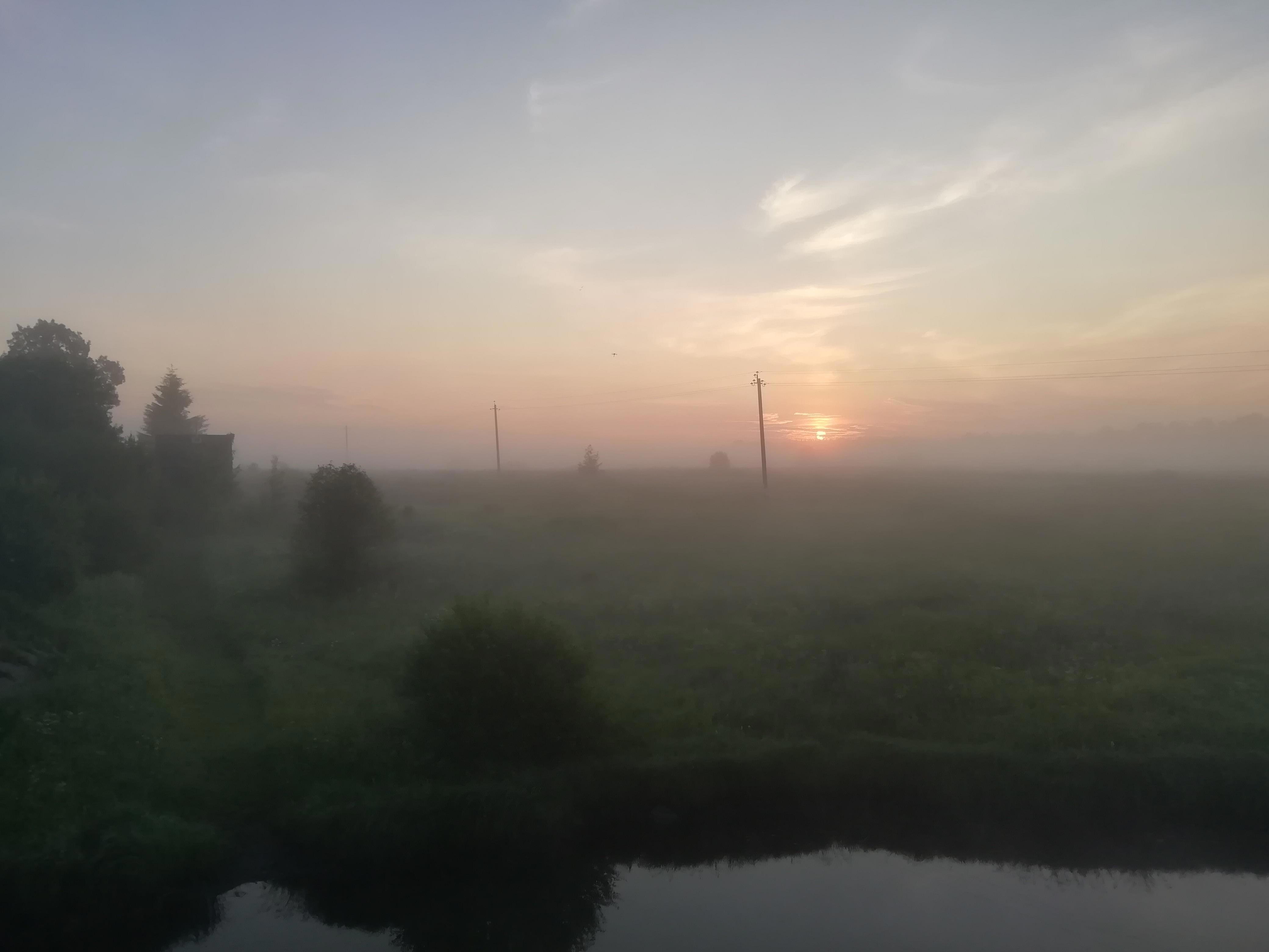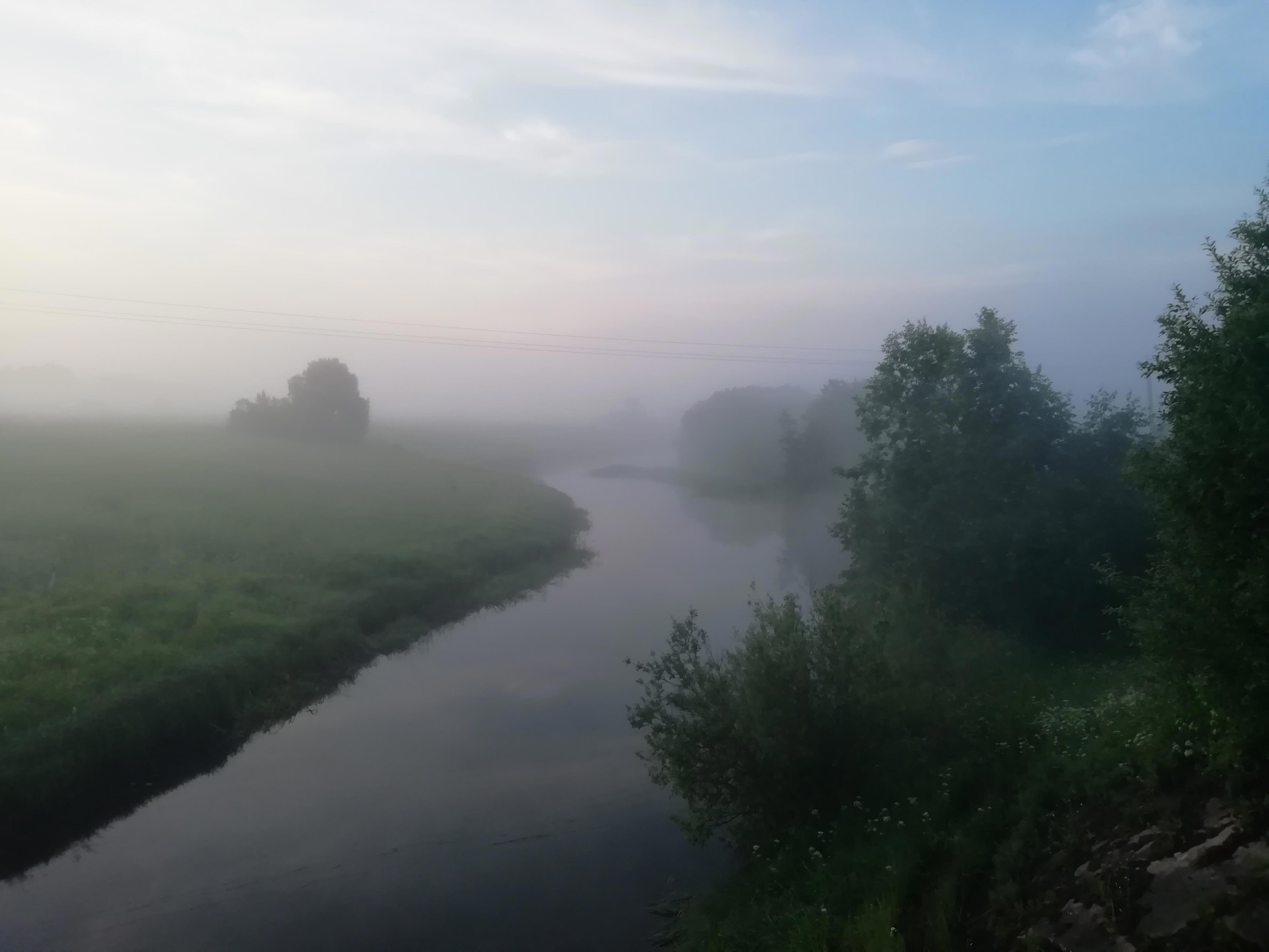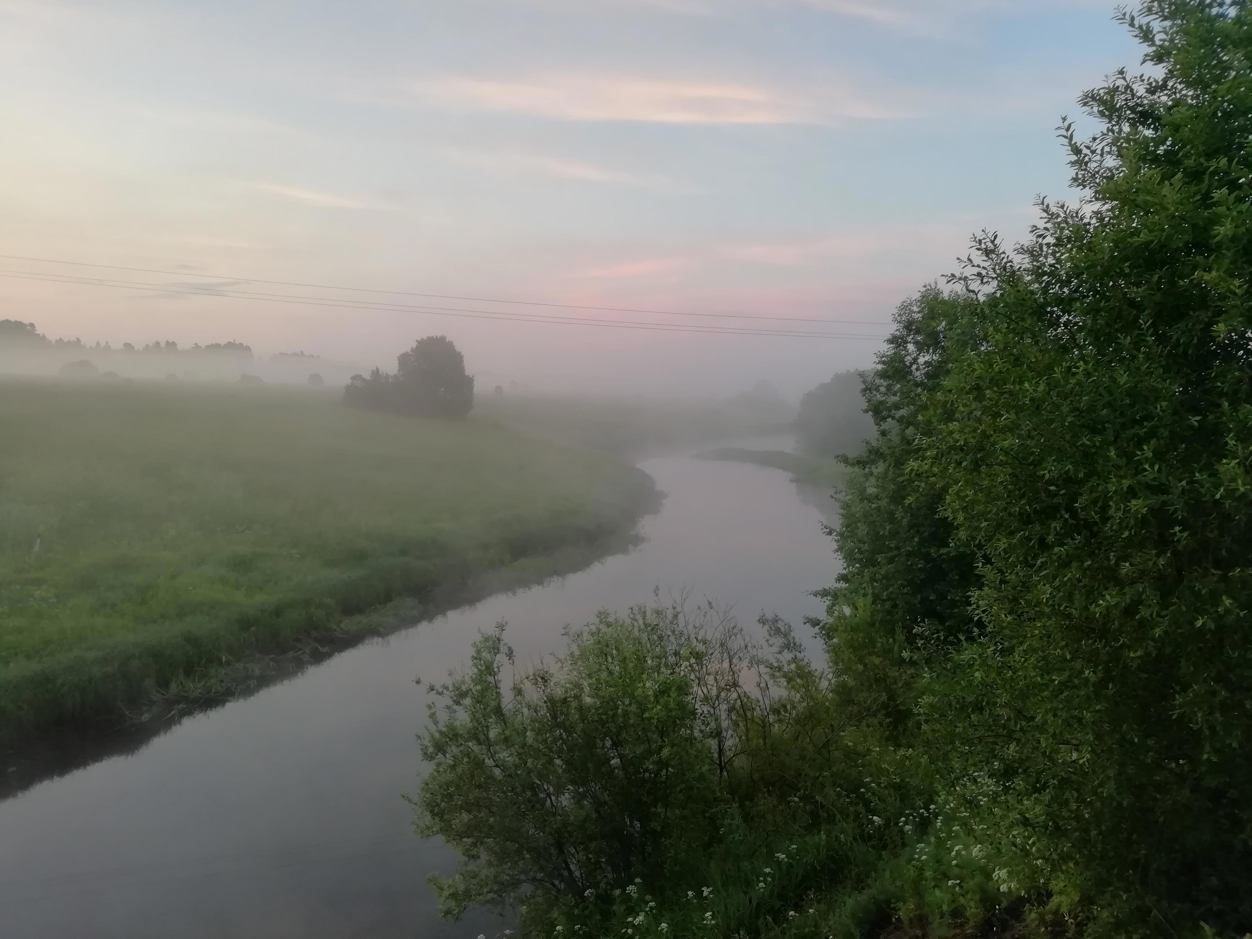 Давно хотел сфотографировать поутру эту речушку, но все руки не доходили. А тут в три часа утра, да с туманом - такой повод!