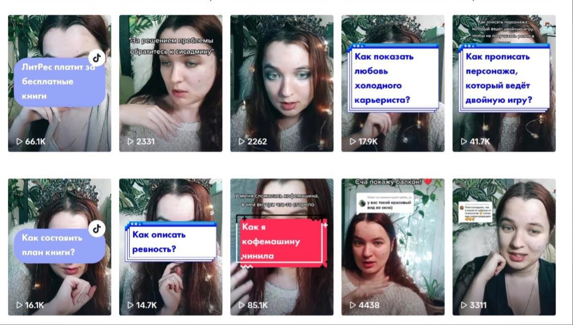 Кстати, если вы до сих пор думаете, что ТТ - это кривляния под музыку, то нет. Больше всего у меня там залетают серьезные разговорные видео, где я либо рассказываю об интересных моментах в работе над книгой, либо помогаю начинающим авторам с советами типа "чем заменить слово усмехнулся".