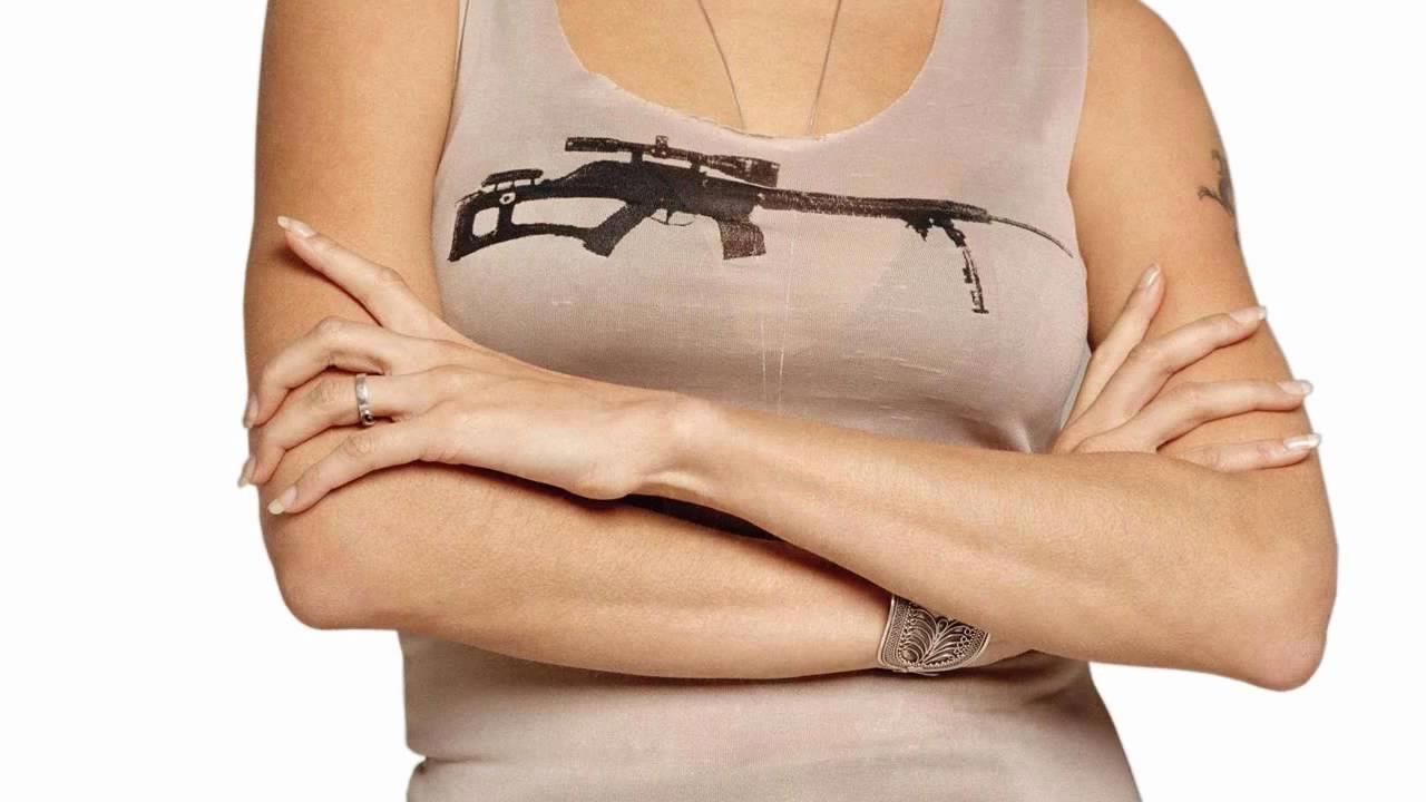 «Скрестив руки на красивой груди». Если мы разбиваем устойчивое выражение «скрестить руки на груди», возможно, имеет смысл его модифицировать чем-нибудь поярче прилагательного «красивый», тем более, что «скрещивая руки на груди» женщины складывают их, строго говоря, под грудными железами, а не на (если не прикрывают грудь намеренно или не обхватывают себя за плечи).
