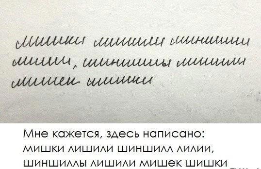 Шутка. Абсолютная невозможность прочитать русский рукописей язык. Любой, кто имел дело с докторами и рецептами, это знает. ЛОЛ.