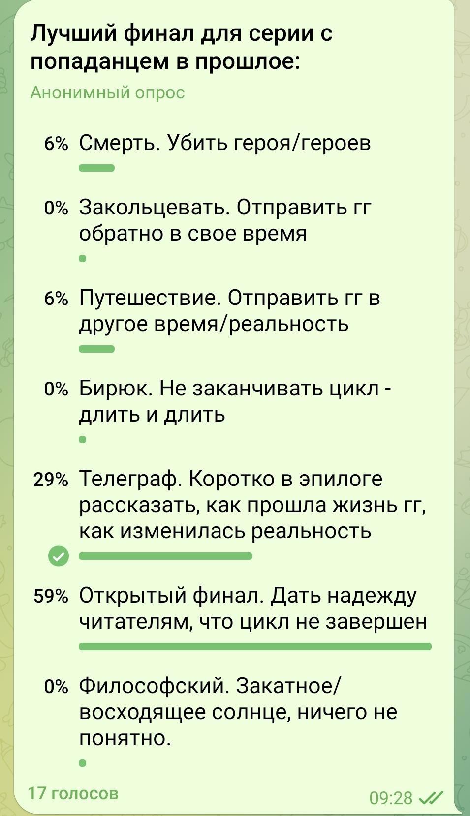 Автор: Алексей Вязовский17 авторов из нашего закрытого чата писателей проголосовали для вас за лучший финал: