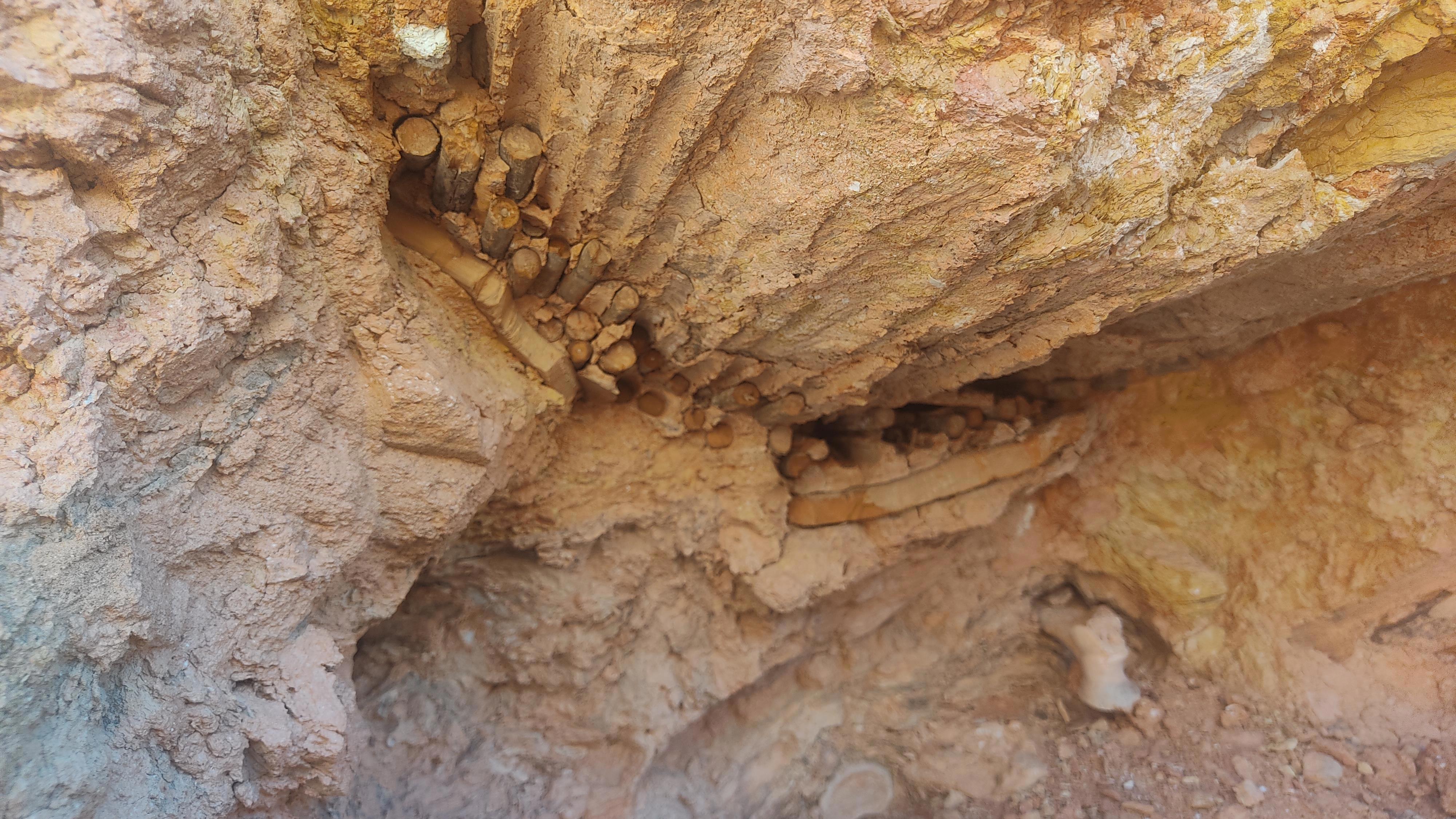 И такие есть, скелет вымытый дождями и местными палеонтологами (рёбра, позвонки и т.д.)