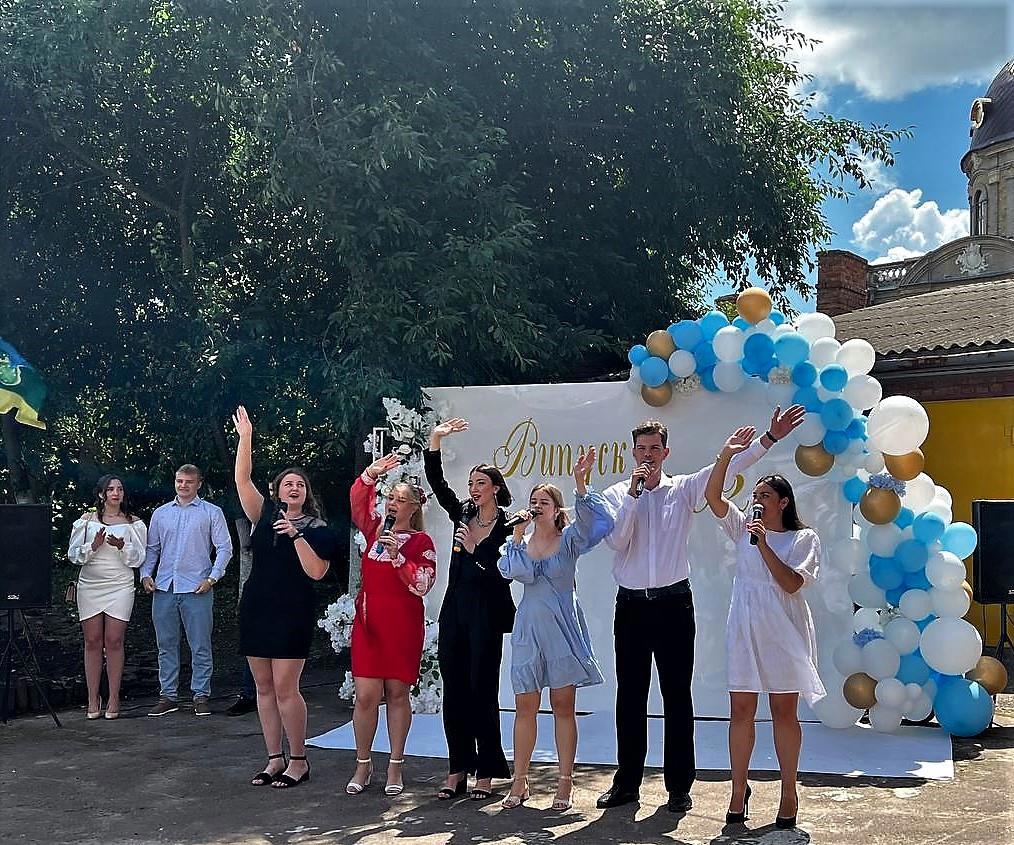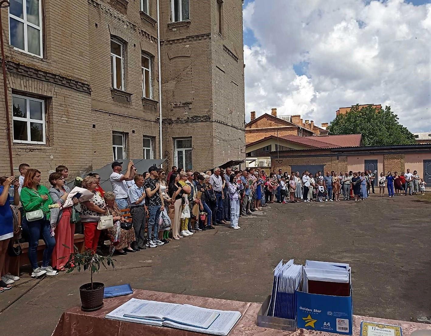 Дворик у нас несчастный, зато бесплатный, в нём организовали фотозону. Девчонки её активно юзали до получения дипломов и после. Но у меня не осталось сил, финальных фоток нет.