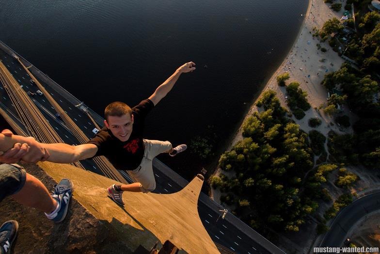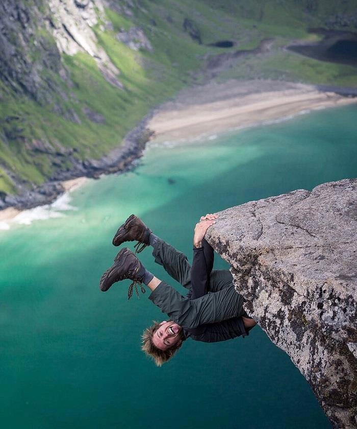 Фотки с камнем - все дело в ракурсе. Если смотреть прямо, то под ногами земля и риска ни малейшего. Сам таким баловался.