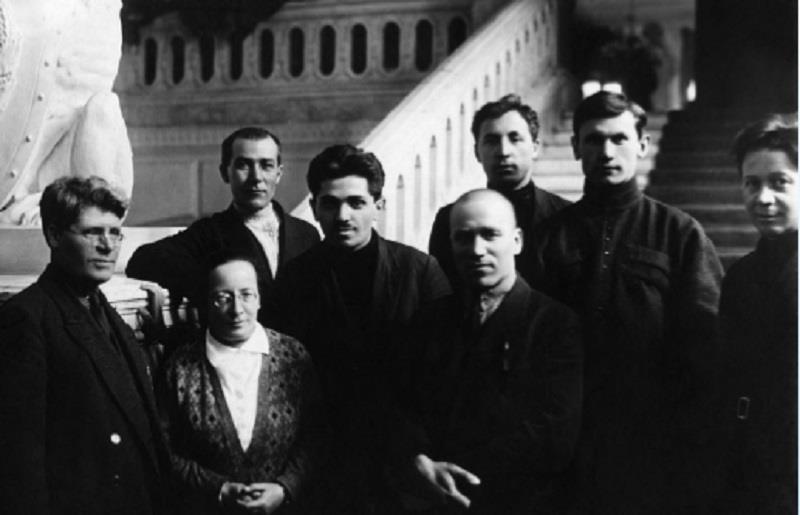 Когда эти "волчата партии" выросли, она никогда не отказывала им в помощи, считая их... Не детьми, конечно, детей у нее никогда не было, но - воспитанниками. С двумя из этих юношей - Фадеевым и Тевосяном - ее всю жизнь связывали особые, доверительные отношения. Вот они все возле райкома, Тевосян и Фадеев - слева и справа от лысого коммуниста, Землячка - между Тевосяном и Губкиным, ректором академии.