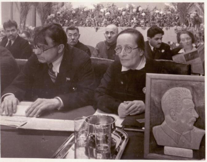 Землячка в президиуме. На заднем плане - инструктор Ленинского райкома И. Тевосян.