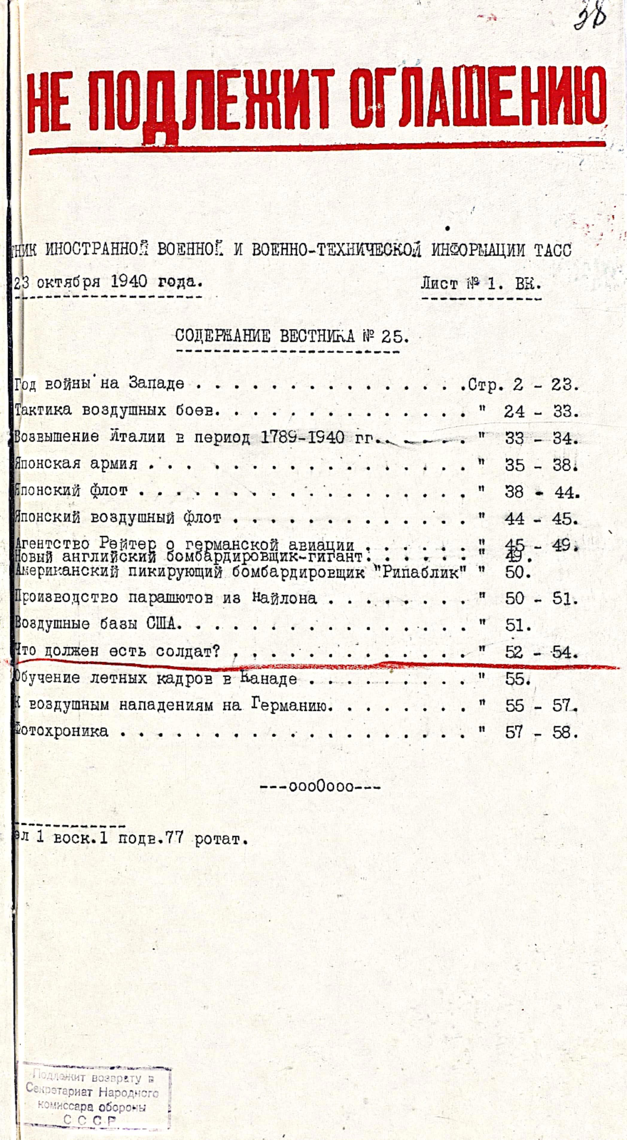 Сегодняшней статьей открываю цикл обзоров "Вестников иностранной военной и военно-технической информации ТАСС." Работники ТАСС изучали иностранную прессу, делали из неё выборки и обзор, а затем направляли в Наркоматы, в частности - в Наркомат обороны. В центральный аппарат НКО материал поступал выборочно, только в том случае, если в сборнике затрагивались профильные вопросы. Так как номер высылался полностью, то и в Главное Интендантское Управление поступали не только статьи о снабжении, но и обзоры иностранных армий, рассказы о боевых действиях или статьи о новинках авиации.