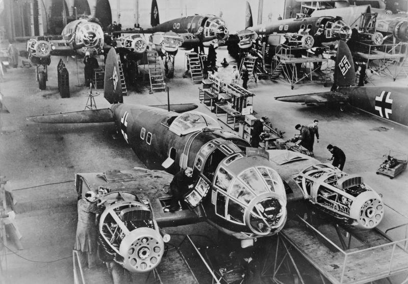 Сборочная линия немецких бомбардировщиков Хейнкель He.111. Декабрь 1940 г.