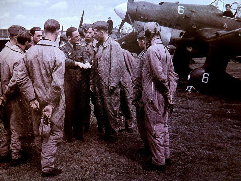 Во всех операциях пикирующие бомбардировщики играли решающую роль. Мы можем с гордостью сказать, что мы одни обладали этим превосходящим оружием в таких размерах, что мы были неуязвимы. Поучительно в этой связи констатировать, что идея пикирующих бомбардировщиков зародилась еще во время мировой войны у французов и была ими отброшена, как утопия. После войны эта идея вновь вынырнула в США и была там, особенно во флоте, доведена до осуществления в форме постройки отдельных образцов. Затем эта идея снова возвратилась в Европу и была дальше разработана, как французами, так и англичанами с тем, однако, результатом, что такой самолет признали годным для действий против движущихся морских целей и потому необходимым лишь во флоте, причем в составе небольших соединений, может быть, на авианосце или в качестве бортовых самолетов на кораблях и т.д. За эти пределы пикирующий бомбардировщик ни разу не вышел у наших противников. Заслугой нашего технического ведомства является то обстоятельство, что оно своевременно осознало огромное значение пикирующего бомбардировщика и разработало идею его боевого применения до сегодняшнего уровня. Такого попадания в цель не достигает ни один самолет, сбрасывающий бомбы с большой высоты горизонтального полета. Комбинация горизонтального и вертикального полета и сбрасывание бомб на планирующем полете приносит успех, но, однако, не заменяет сбрасывания бомб на вертикальном пикирующем полете.,