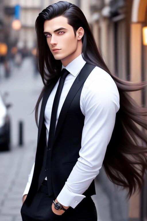 После пятой генерации сеть всё-таки поняла, что мне нужен парень, а не девушка. После десятой генерации я сумела ей втолковать, что парень должен быть с очень длинными волосами в деловом костюме. Но вот глаза персикового цвета наотрез отказалась рисовать. Пришлось самой корректировать. Вопрос к друзьям подписчикам и просто неравнодушным. Справилась ли нейросеть с задачей? Удачно ли выбран стиль? Похож ли Алексис от нейросети на его портрет, нарисованный мной.