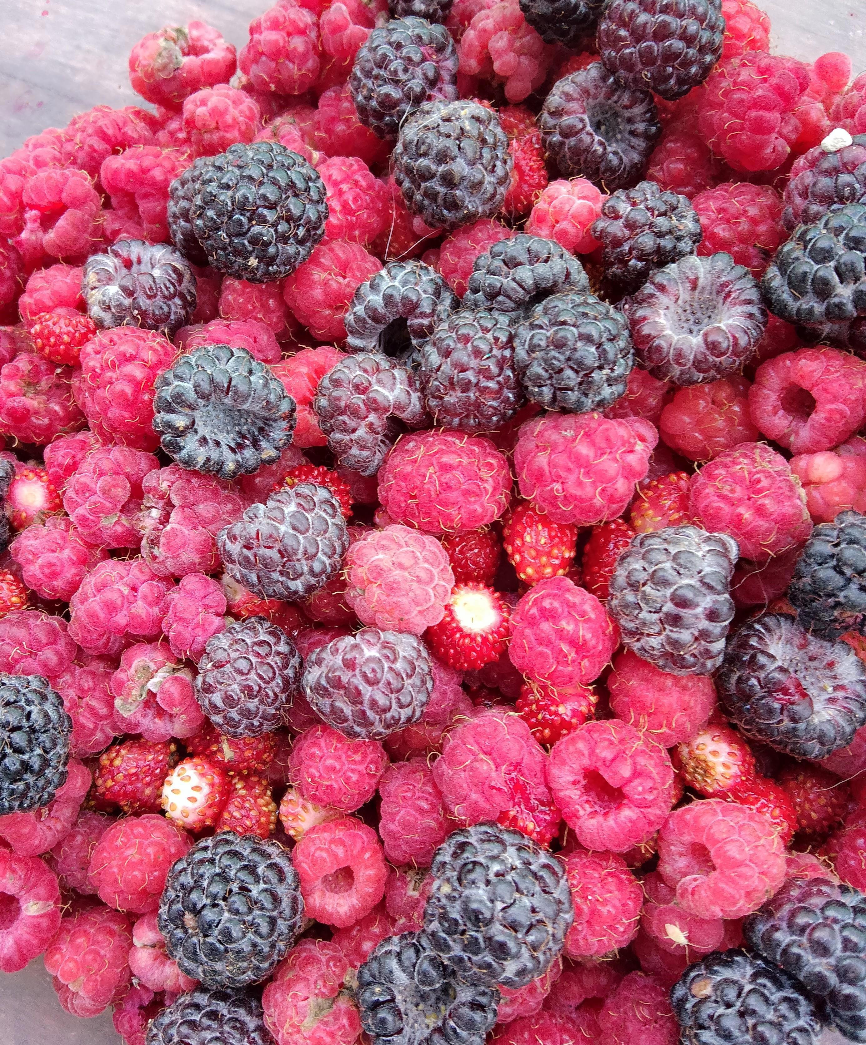Это мой мохнатый друг. "Помогает" малину собирать...