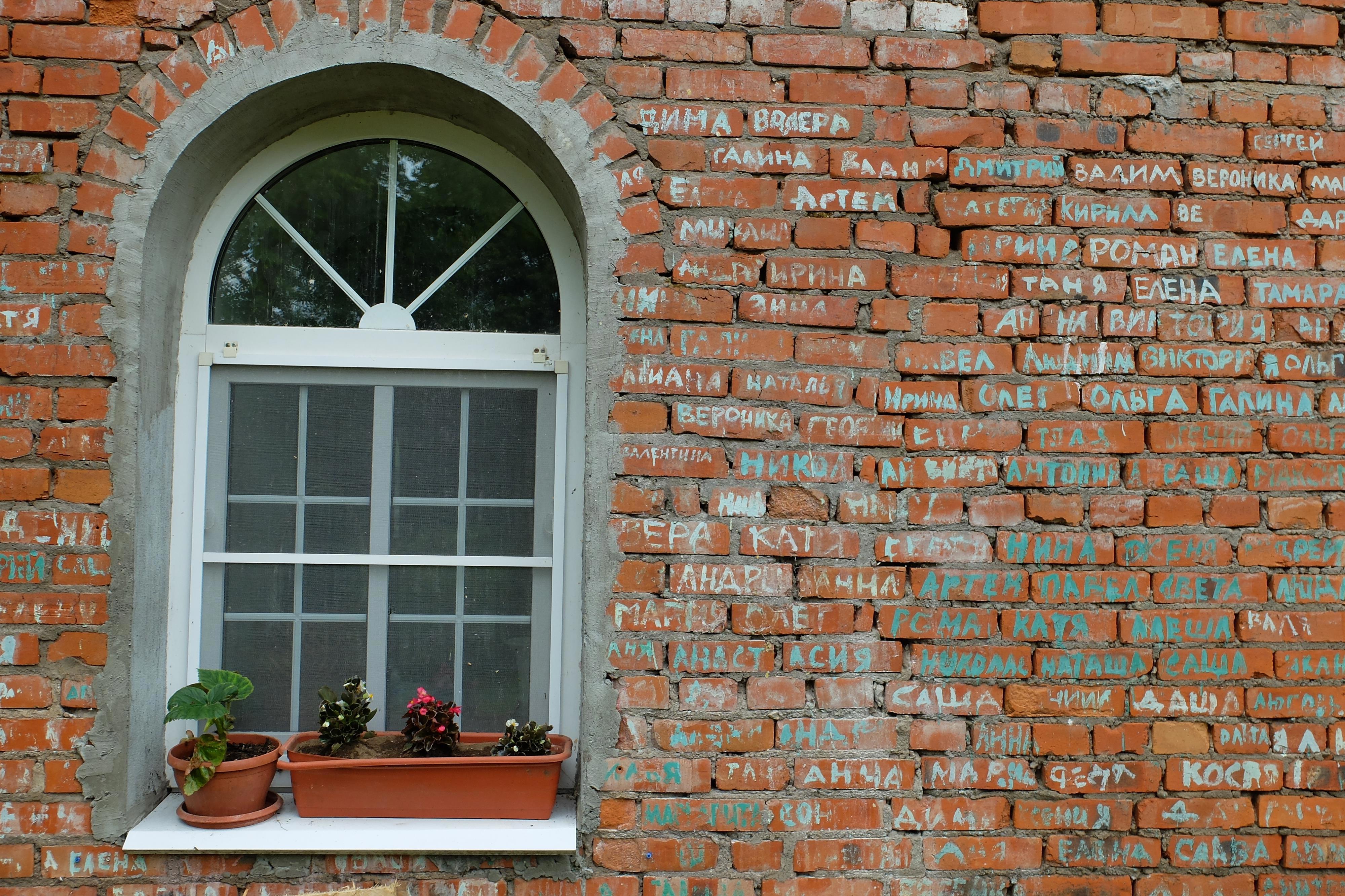 "Именные" кирпичи в восстановленной церкви: