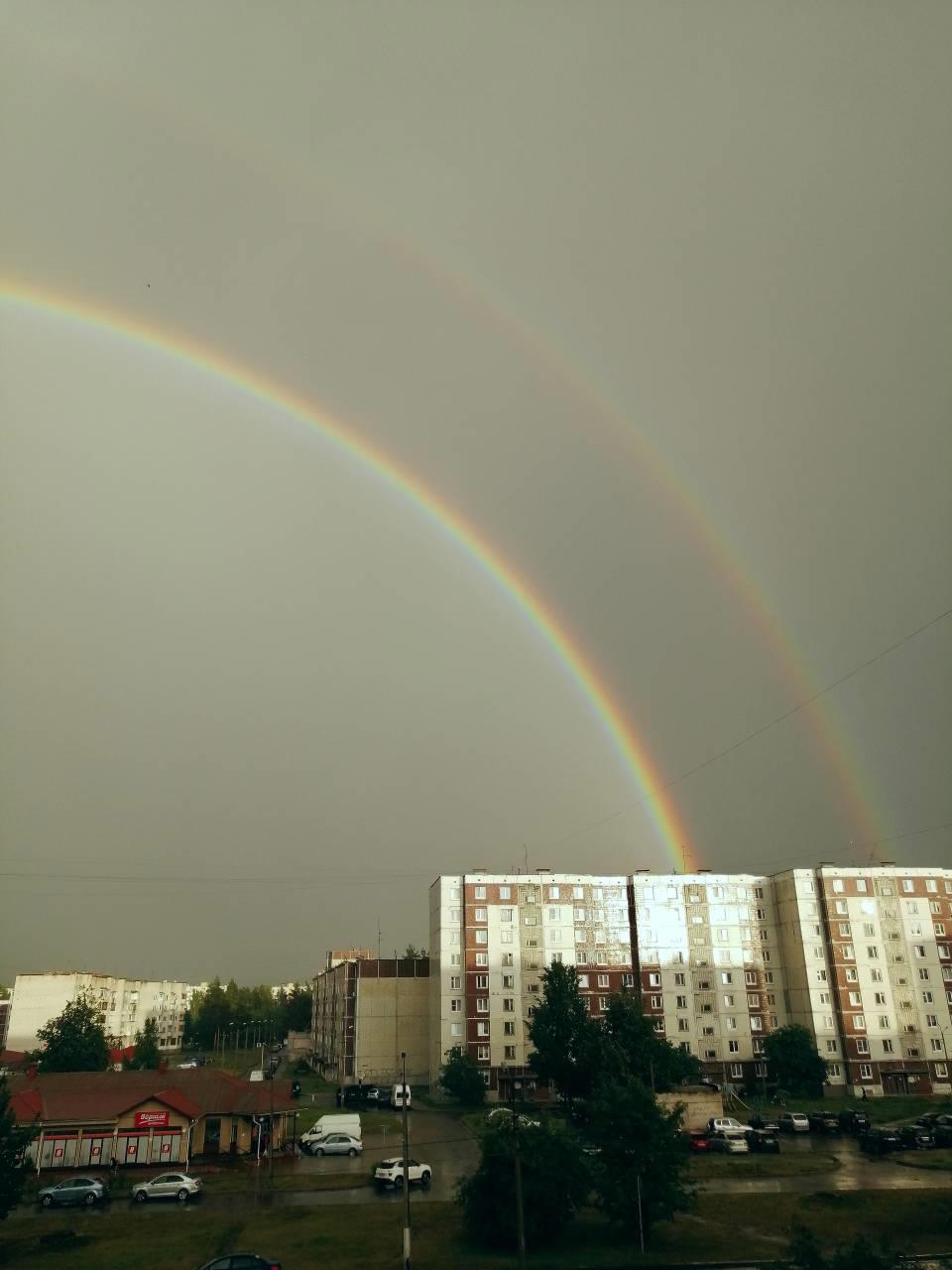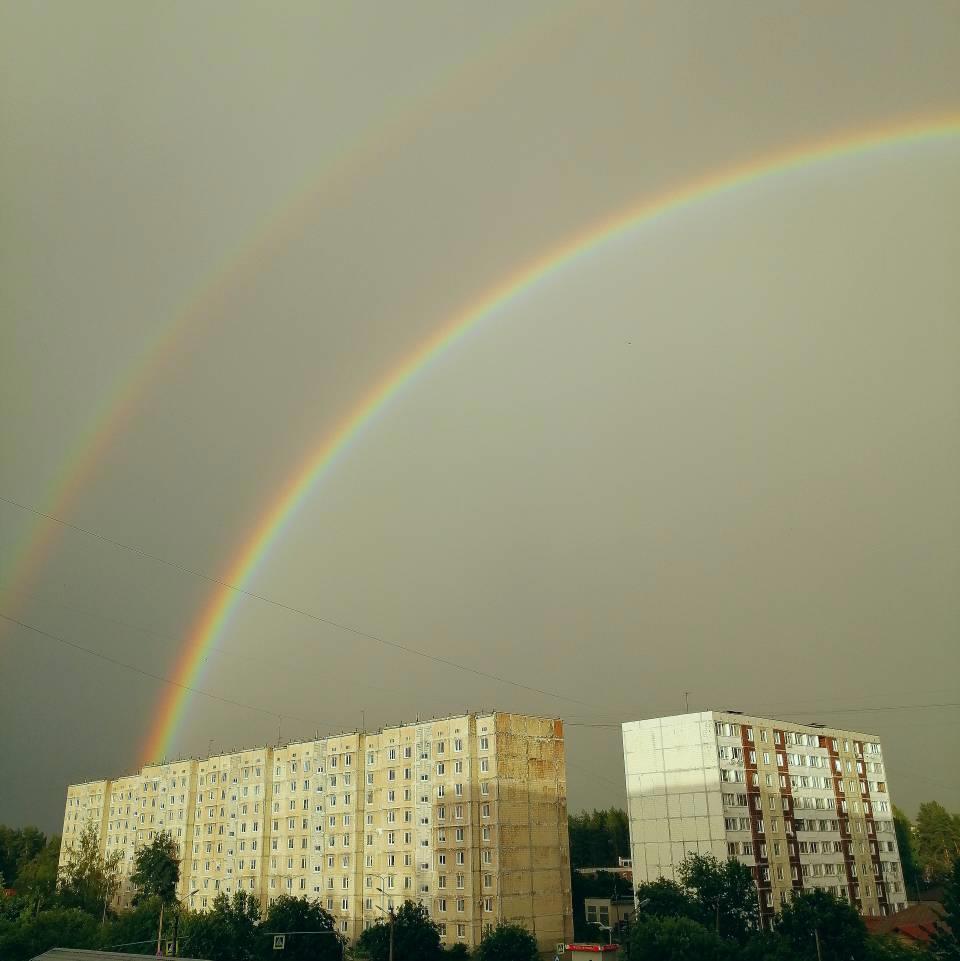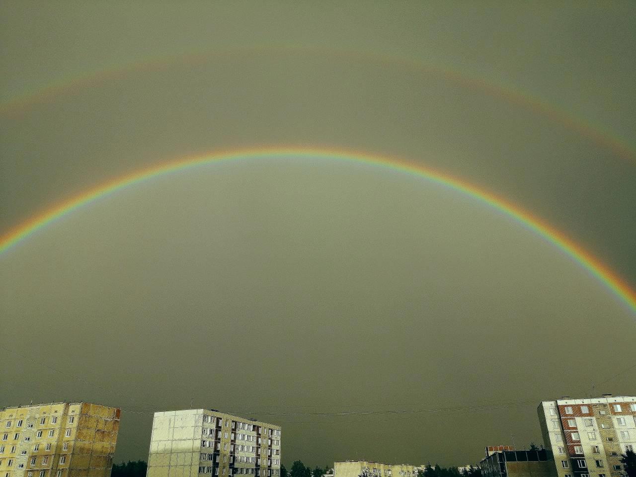 И вот такая зловещая двойная радуга (даже местами тройная) появилась на некоторое время.