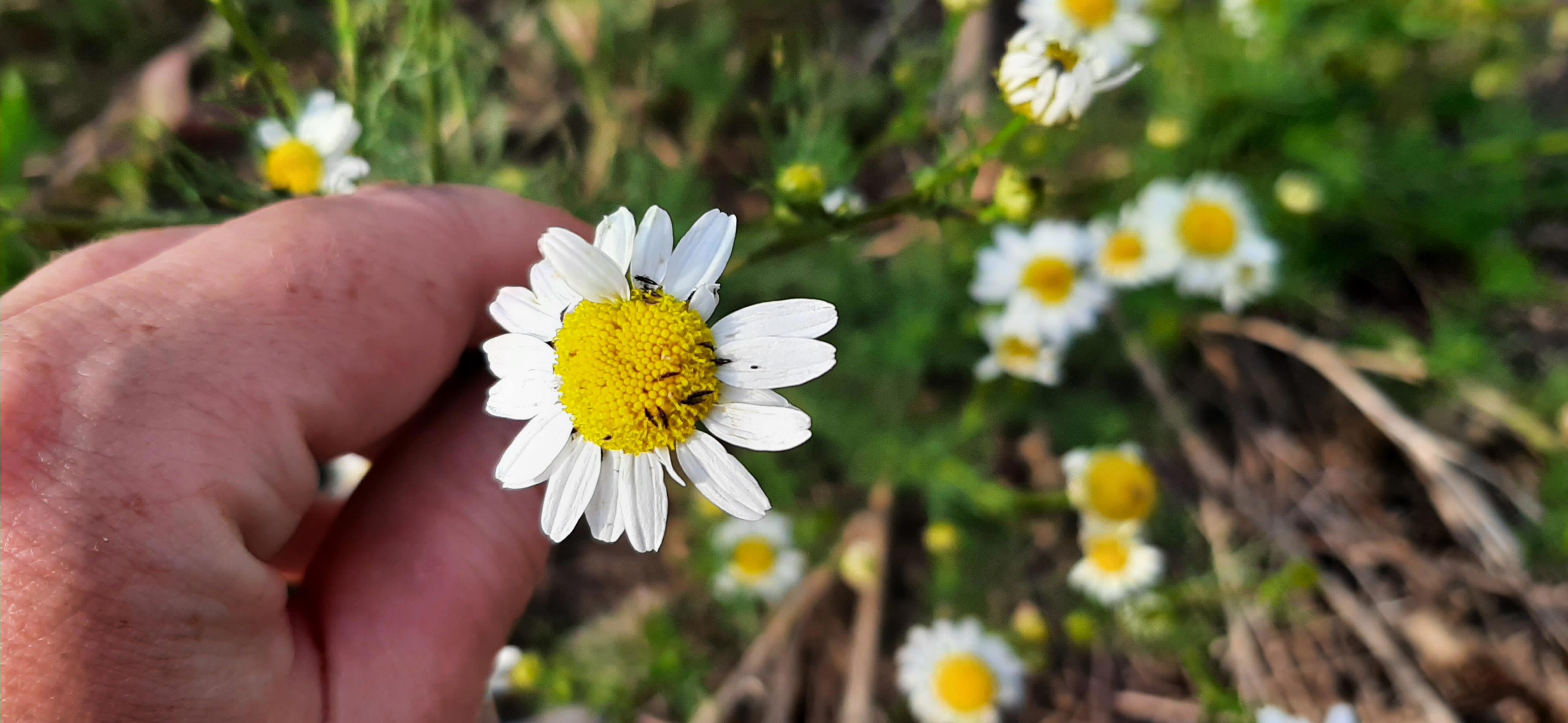 Я как-то показывала обыкновенную ромашку. А теперь встретила и аптечную. Поспешила сфотографировать