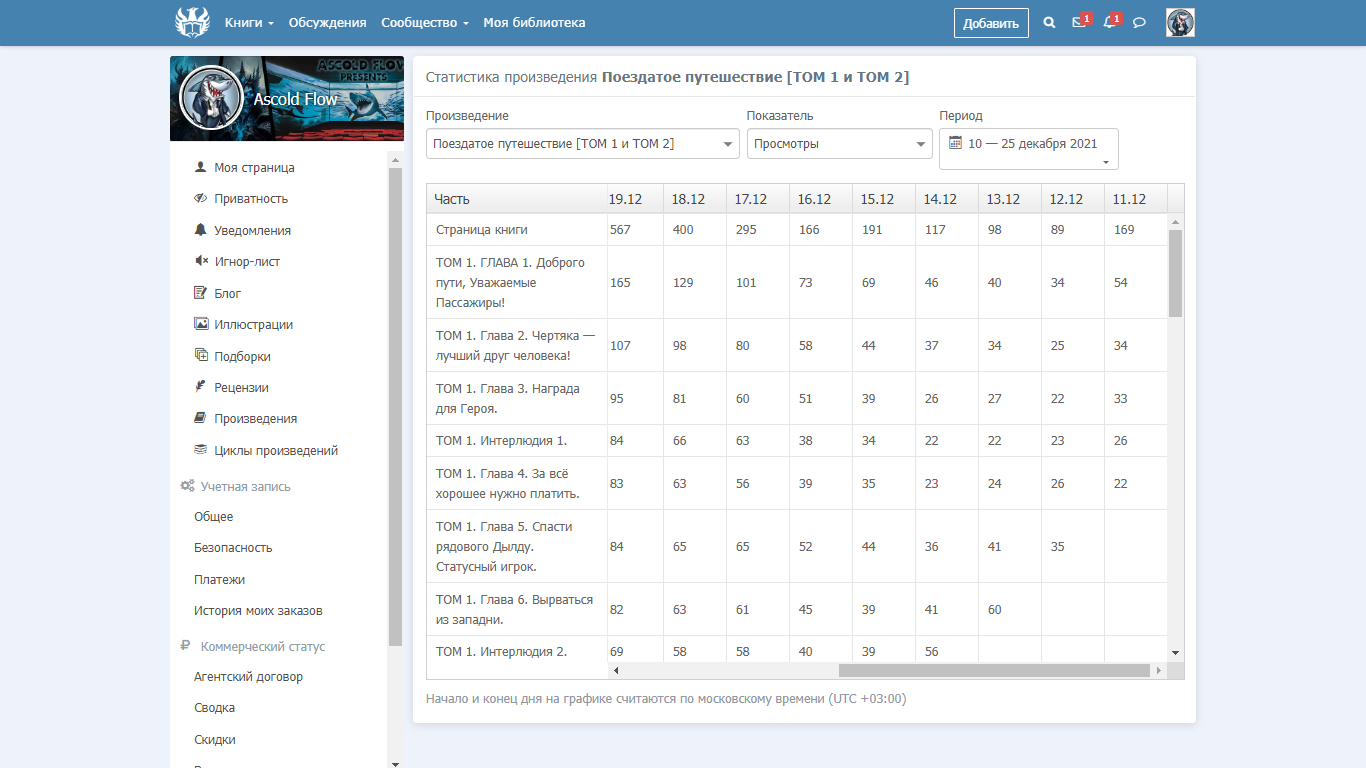 Так было пока меня не бомбануло. Причину уже не помню — но я просто выложил книгу и... понеслось. Её читали. Магия. Как это произошло? За счёт чего? Я не понимал. Рекламы — ноль. Усилий по продвижению — ноль. А затем понеслись советы в личку от пары авторов, которым я очень благодарен. От них же я узнал о «правилах успешной выкладки» и про Коммерческий Статус. КС получить удалось сходу, только с подписчиками была проблема. Вообще, вот так всё начиналось: