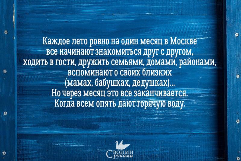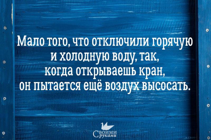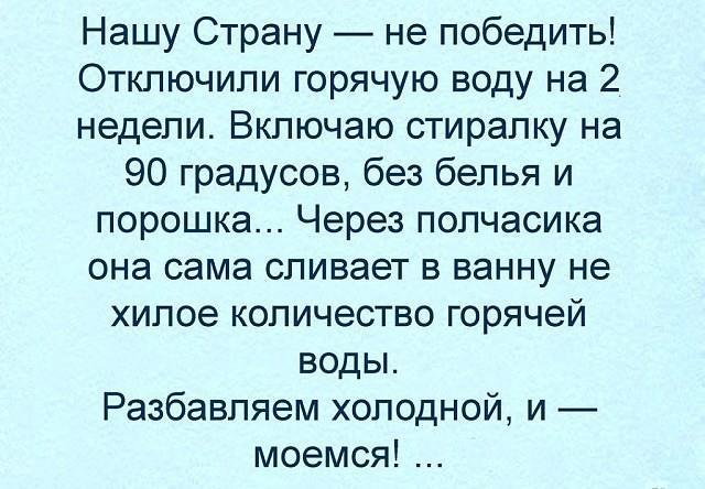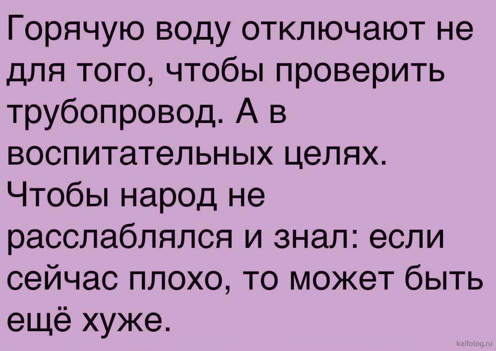 Автор: Евгений ТкачёвПосреди ада есть ледяное озеро. Вода там настолько холодная, что кусок раскалённого металла, брошенный в озеро, мгновенно превращается в ледяную глыбу. Увидеть это озеро невозможно: у всякого, кто подойдёт к нему слишком близко, глаза замерзают ещё до того, как он сумеет его разглядеть. В этом озере сидят граждане — работники ЖКХ, отключавшие летом горячую воду.