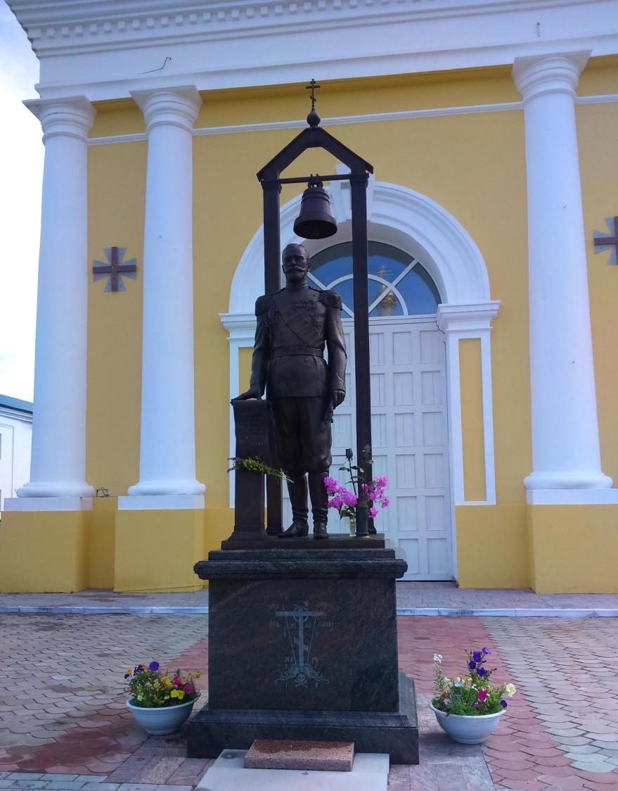 Последний император монастырь, всё-таки, лично не посещал. Но когда на 300-летие дома Романовых он совершил турне по городам России, то в Нижнем Новгороде участвовал в крестном ходе с иконой Оранской Богородицы. Потому и памятник.