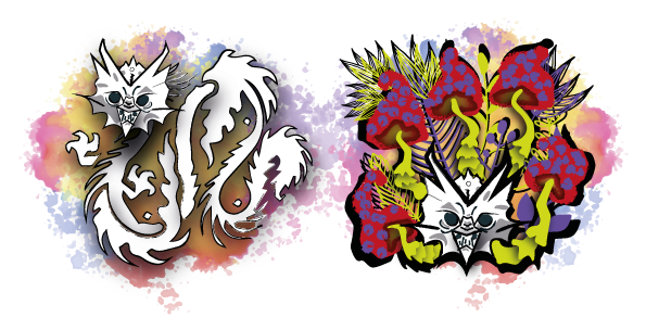 Первое, чем хочу похвастаться – логотип. Мой маскот, или персонаж по-простому – дракон, люблю их. Поэтому и лого по моему мнению должен быть частью этого самого дракона. Остановилась на черепе и сделала несколько вариантов для разных целей.