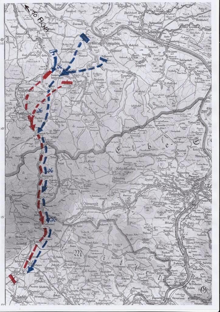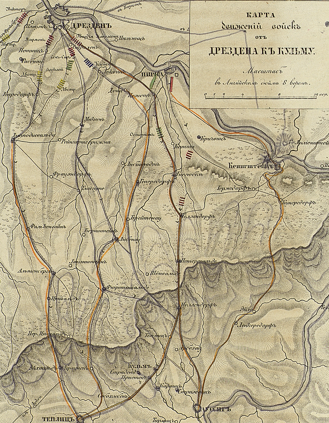Карта отступления частей Остермана и Вюртембергского к Кульму 28-29 августа