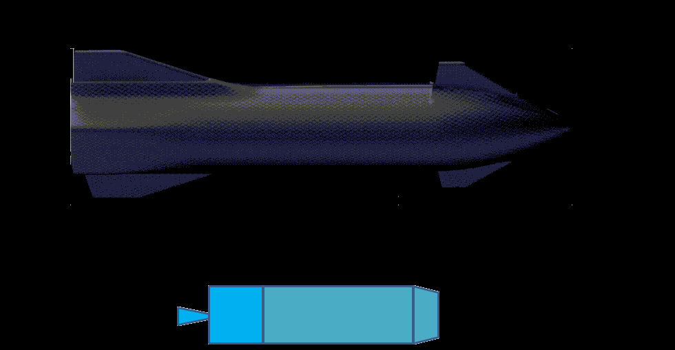 Автор: Михаил Юрьевич Салтыков«Горизонтальная» версия на этот раз вместе с ракетным отсеком. Сверху Gygnus и Дракон-2 в том же масштабе