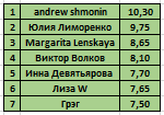 Внеконкурс, на этот раз, тоже добавил интриги   Среди 12 участников оказалась объёмная работа за 200 т.з.   которая стала непреодолимой преградой для многих участников   но, нашлись и те, кто преодолел эту вершину ![]() ![]()   Собственно они и становятся победителями внеконкурсного этапа!!!   Лана Павлова и Кот. Дима Кот получают по рецензии   В ближайшее время, орг выйдет с вами на связь    | |