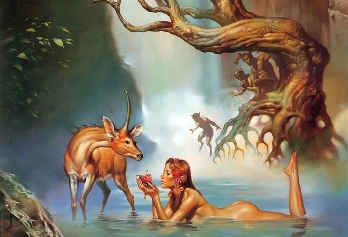 Где-то в те далёкие времена в мою жизнь вошёл первый персональный комп, недавно появившийся у Кати. Она же принесла пиратскую библиотеку фантастики с фэнтези, где по уши хватило и Ройо, и Фразетты, и прочих талантливых маляров мускулистыми телами и девичьими выпуклостями по холсту, включая, конечно же, работы великого перуанского качка Бориса Вальехо и его прекрасной второй жены-культуристки Джулии Белл.