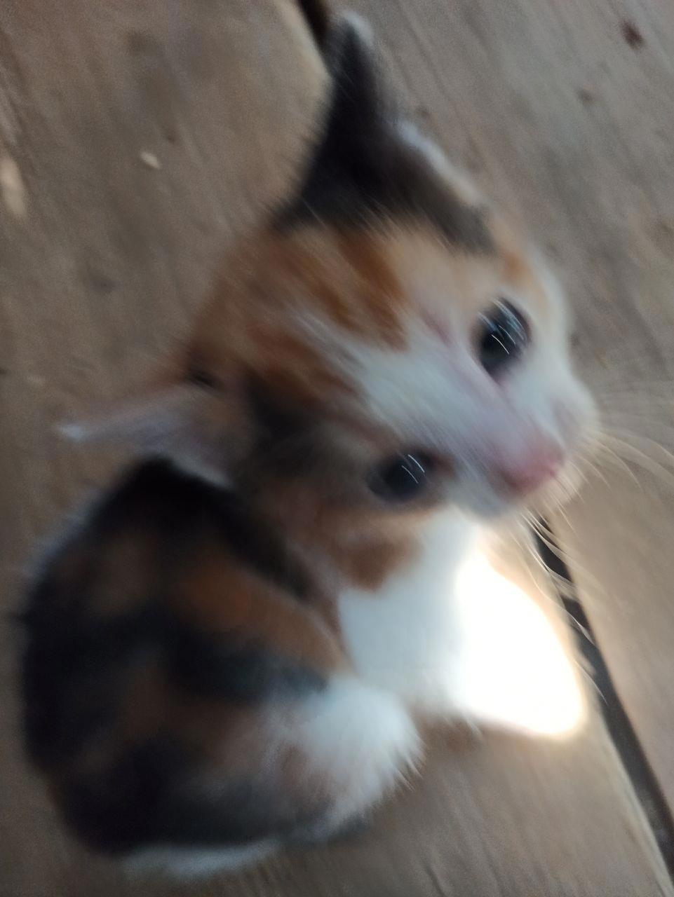 Отловить девицу получилось без проблем. Вся семья, налопавшись сухого корма, испарилась в неизвестном направлении, а трехцветочка легла поспать на солнышке в дровянике, где и была мною схвачена и посажена в коробку.