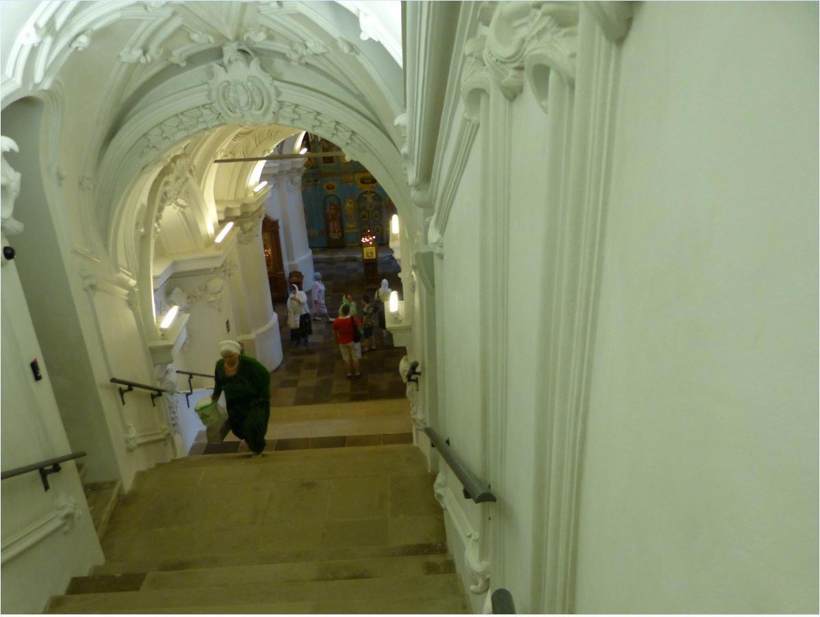 Из восточной части собора (из обхода вокруг алтаря) можно спуститься в подземную церковь Константина и Елены. Туда ведут 33 ступеньки.