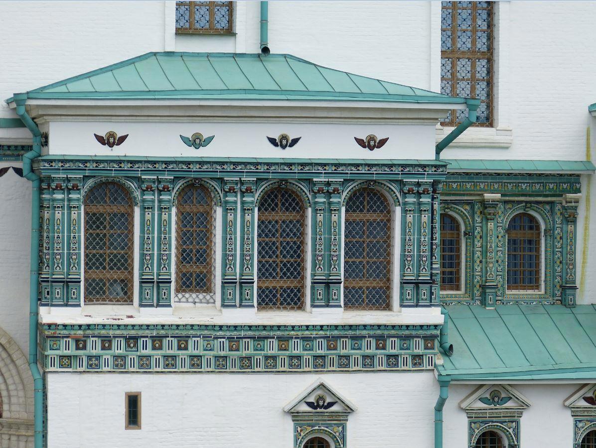Опала Никона вызвала остановку работ на 14 лет. Но царь Фёдор Алексеевич, посетив Новый Иерусалим в 1678 году, оказался настолько впечатлён недостроенным храмом, что сделал всё, чтобы мастера вернулись на площадку и продолжили воплощать в камне амбиционый замысел бывшего патриарха. Он даже вернул Никона из ссылки и добивался его полной церковной реабилитации, чтобы престарелый клирик лично наблюдал за ходом строительства. Вот только престарелый иерарх умер по дороге из Кирилло-Белозерского монастыря 17 августа 1681 года. А 27 апреля 1682 года скончался и царь Фёдор Алексеевич. Так что достраивали Воскресенский собор люди, имевшие самое приблизительное представление о первоначальном замысле. Но даже с этими оговорками получилось нечто нетривиальное, очень необычное для России.