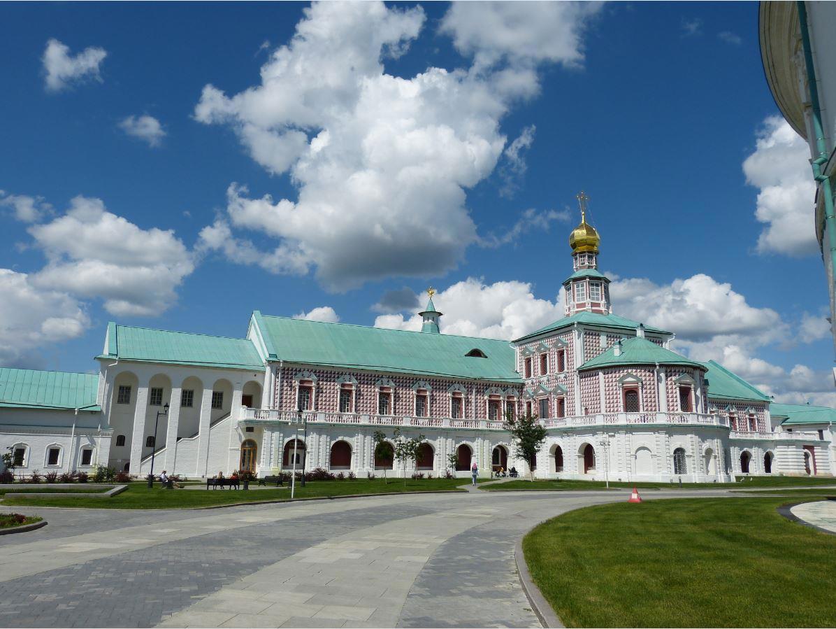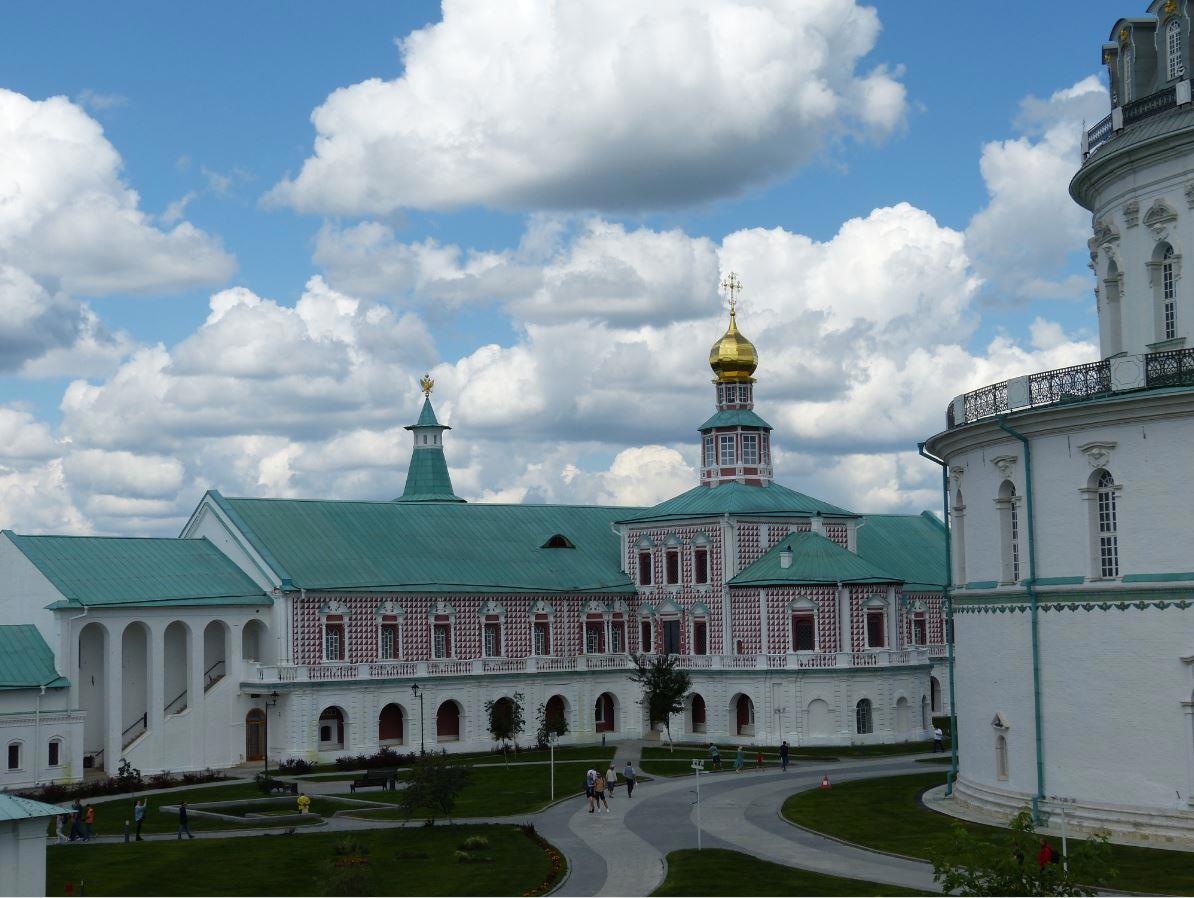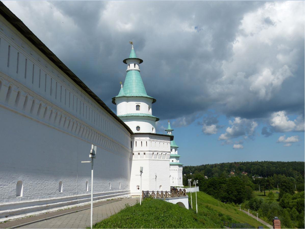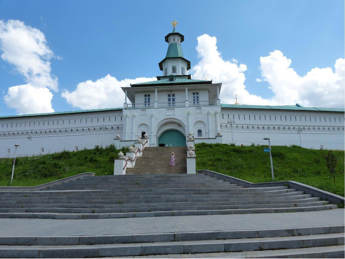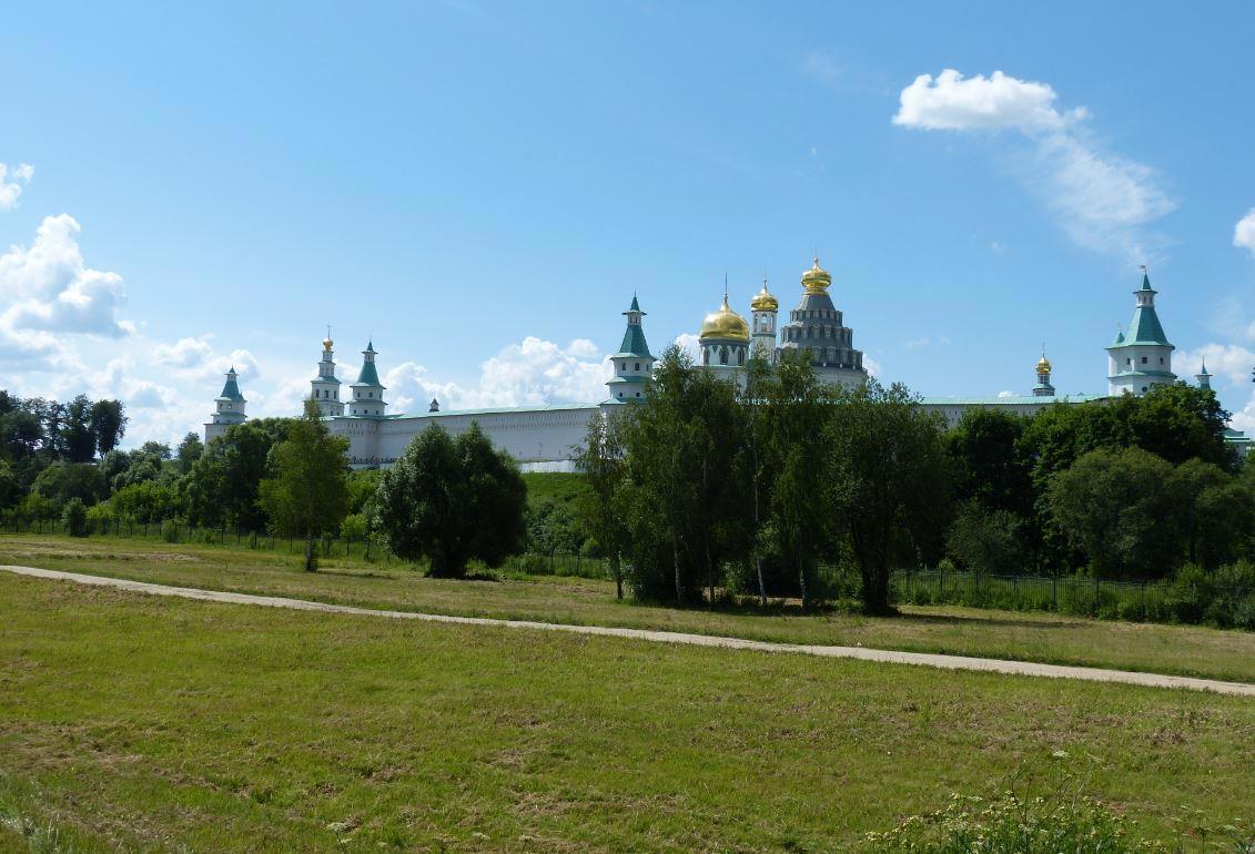 От железнодорожной станции Новоиерусалимская, если перейти по подземному переходу под Волоколамским шоссе, можно быстро дойти до начала паломнической тропы, широкой и благоустроенной. По этой тропе до монастыря 15 — 20 минут неспешного шага. И вот уже вдалеке видны золотые купола церквей и зелёные шатры башен: