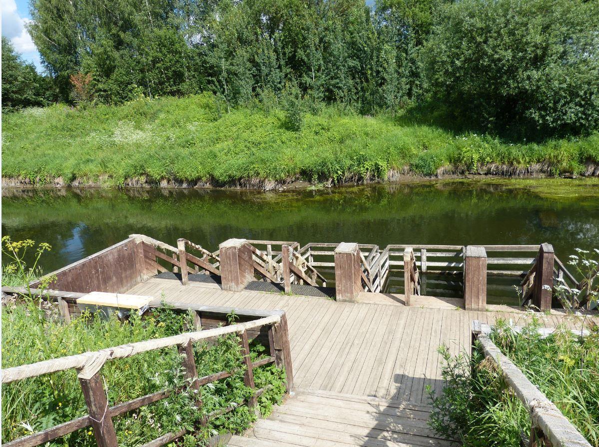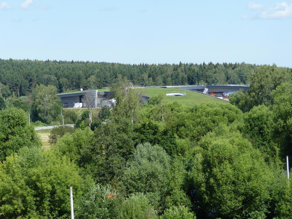 Рукотворный "зелёный холм" почти не выделяется на фоне окружающих его деревьев. И берега Истры не портит.