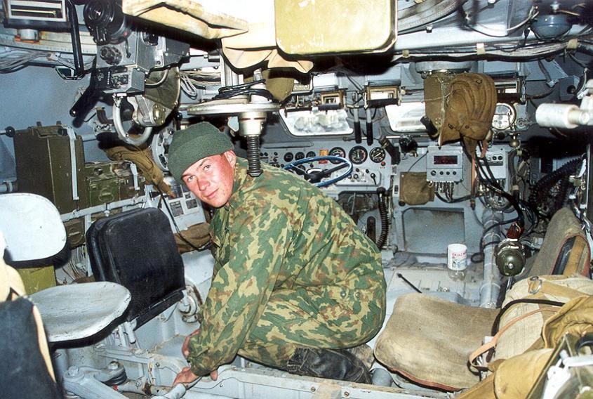 В салоне БТР-80. Видны места мехвода, командира и башнера.