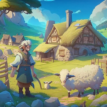 Картинки нарисованы нейросетью Кандинский по запросу "пастух мужчина деревня козы" (позже коз поменяли на овец, но это не очень помогло).