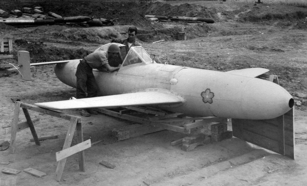 Были и другие варианты. Однако это всё использование «не по профилю». Но были и другие машины. Они проектировались именно как самолёты-снаряды, управляемые людьми, которые летели, чтобы умереть. Вот такой ракетоплан-снаряд Yokosuka mxy-7, например: