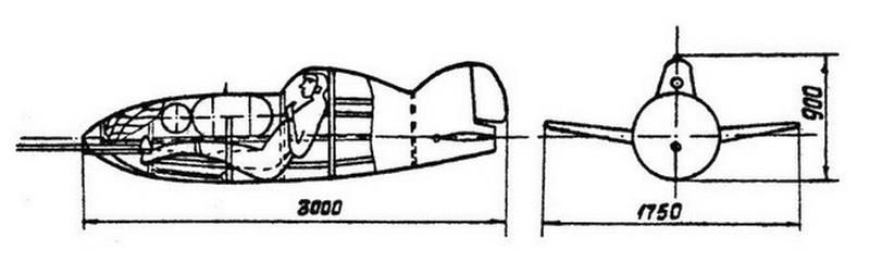 Ну, да ладно. Я, собственно, про воздушный таран, как средство борьбы с противником. Тут вообще-то всё не просто. Разумеется, здесь всё непросто. Просто ведь никогда не бывает. Постараюсь покороче. Начну от печки, как водится, то есть с нас. Таран у нас нормальным средством борьбы не считался, хотя в исключительных случаях такое допускалось и даже изучалось… и даже пытались проектировать кое-что для этой цели. В тридцатых годах конструктором Львом Григорьевичем Головиным был разработан специальный ракетоплан-перехватчик с ЖРД, который был должен уничтожать самолёты противника именно таранным ударом. Возвращаться на грешную землю предлагалось на парашюте. Выглядела эта штука вот так: