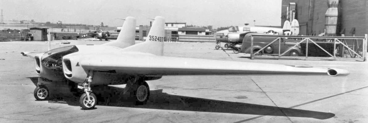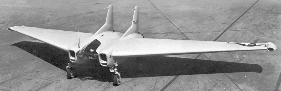 Ну а что же американцы? Ведь они не только имели возможность экспериментировать, но и с удовольствием этим занимались. В литературе можно встретить статьи про самолёт-таран фирмы Northrop, построенный по схеме «летающее крыло» XP-79B от 1945 года. Вот чертёжик этой машины: