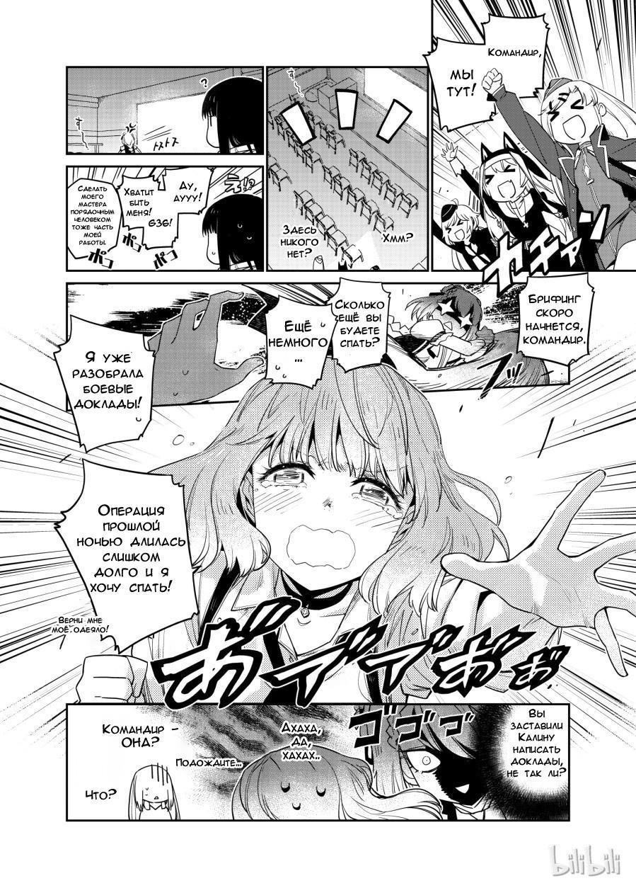 В-третьих, автор здорово обыгрывает игровые условности и особенности. Например, участие в сюжете других командиров, помогающих протагонисту с флангов во время боевых операций - явная отсылка на возможность в игре запросить отряд у другого игрока, добавленного в друзья. А ещё, хотя для рободевочек одежда суть чистый вопрос эстетики (они не мёрзнут и не царапают коленки о кусты), как они бегают по лесам в своих ярких нарядах? Манга отвечает - никак, они поверх обычной одежды надевают маскировочные плащи.